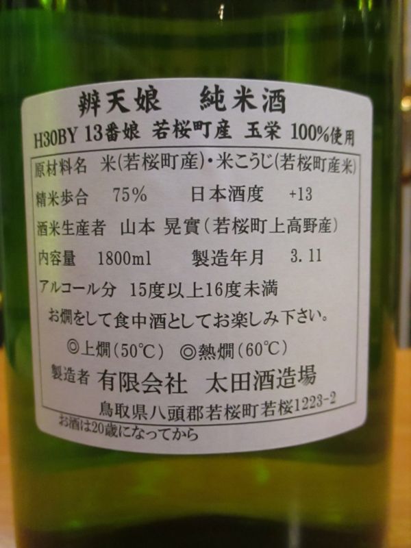 辨天娘 純米玉栄 13番娘 30BY 1800ml 太田酒造場