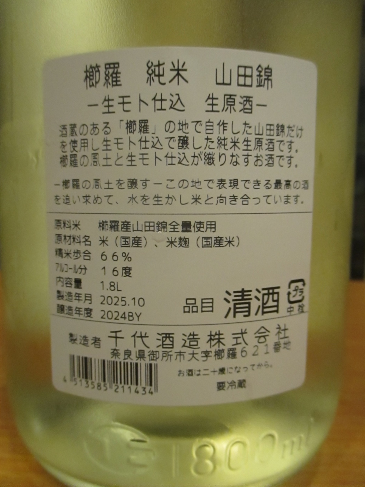奈良県御所市、葛城山の麓にある手造り蔵「千代酒造」さんの限定流通商品です。