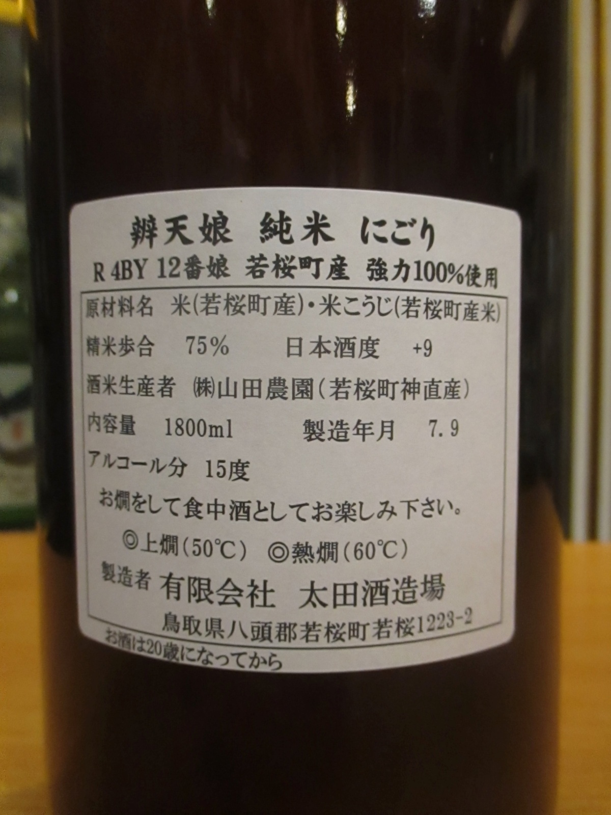 辨天娘 純米強力にごり12番娘K7 R4BY 1800ml 太田酒造場