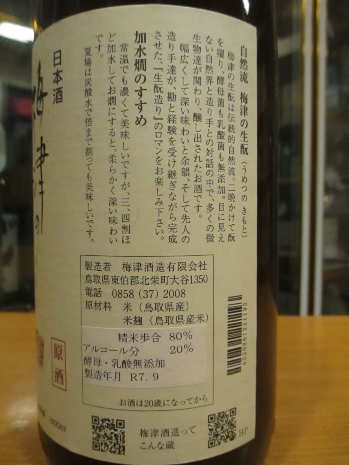 梅津の生酛 山田錦80 R1BY 1800ml 梅津酒造