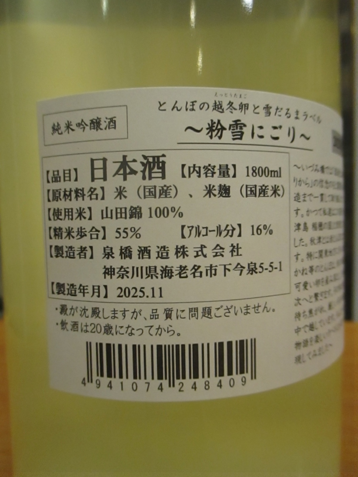 いづみ橋 とんぼの越冬卵と雪だるま純米吟醸粉雪にごり 2025BY 1800ml 泉橋酒造 [010180025112335]