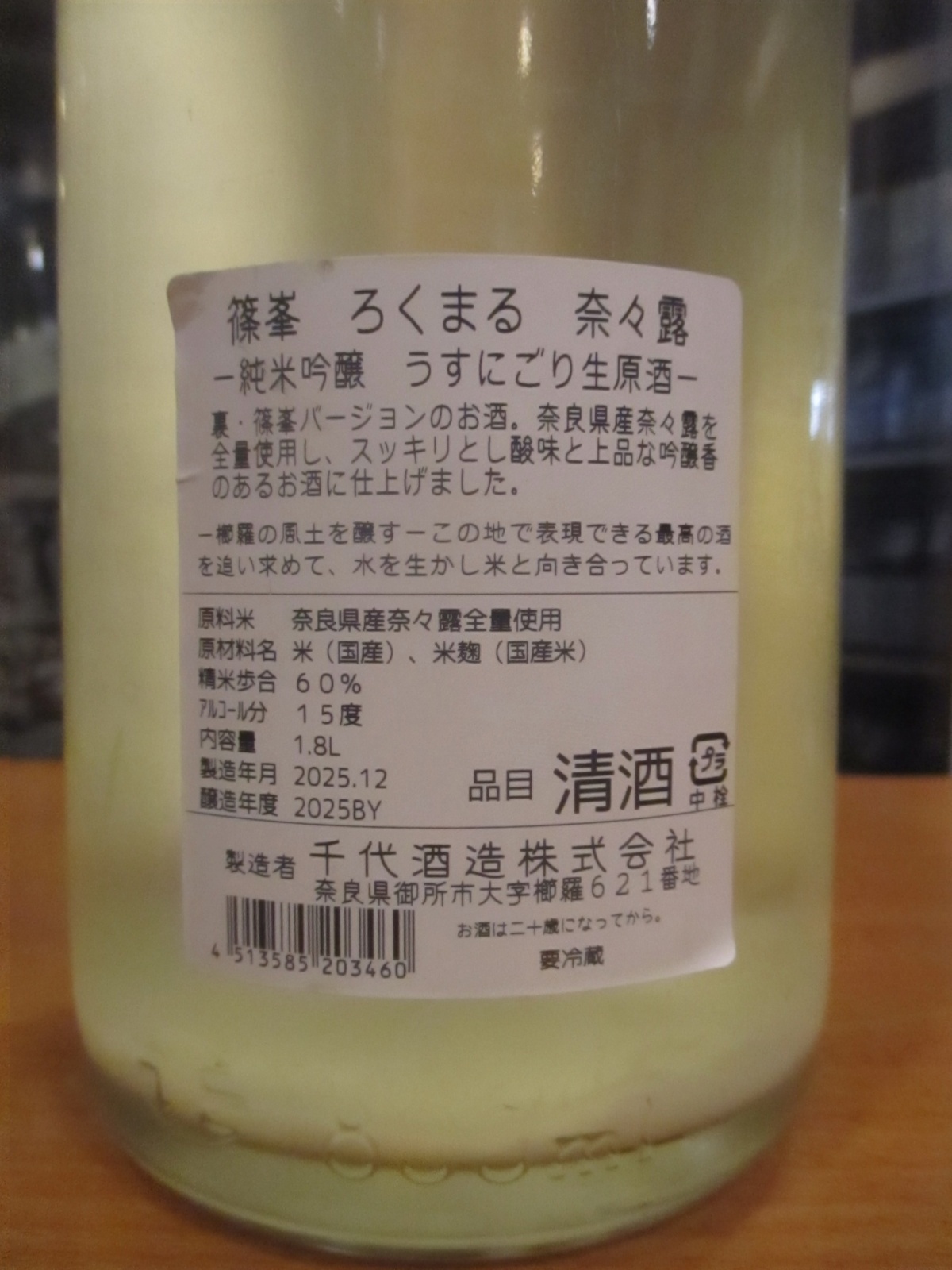 ろくまる 奈々露純米吟醸うすにごり生原酒 2025BY 1800ml瓶 千代酒造